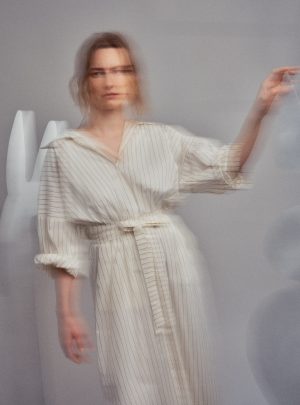 An everyday essential – this belted shirt dress in breathable cotton balances structure and fluidity.